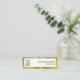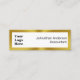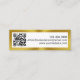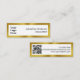 This black white and gold mini business card has a display image on the front that you can replace with your business logo. Two lines of display text for your name and job title are also on the front. The back has a QR code image. You must enter your URL for your QR code to work properly. The back also has three lines of display text for your phone number, email address, and website. The faux gold border is not made of foil.