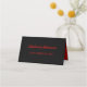 Party table place card with black, white, and red. Personalise with your party information using the easy templates. Font colour, font style, and font size are customisable. Classic and chic, the perfect party table place card for any celebration.