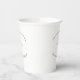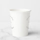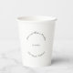 Elegant script black and white curved names, date, location, text, chic wedding party Paper Cups.