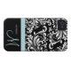 Elegant Black & White Damask Pattern with Monogram Case-Mate iPhone Case