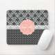 Elegant Black & White Damask Pink Girly Monogram Mouse Pad