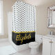 Elegant Black White Dot Pattern Gold Script Name Shower Curtain