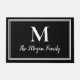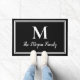 Elegant stylish modern custom monogram doormat in classic black and white Double Borders . You can personalise this simple modern black and white double borders with your family's last name in script and a serif style monogram initial.