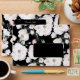 Delicate white roses pattern on elegant black wedding envelope. Customisable grey typography for your return address