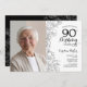 Elegant Black White Floral Photo 90th Birthday Invitation