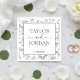 Celebrate your special day with these elegant and minimalist custom wedding napkins. Featuring a delicate black and white hand-drawn botanical floral border, this design centers around a clean square frame for a modern aesthetic.
