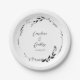 Elegant Black White Floral Wreath Wedding Custom Paper Plate