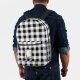 A classic gingham plaid pattern with monogrammed letter with details of watercolor eucalyptus and lavender.