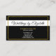 This elegant design features a background on both sides with gold and white elements including a calligraphy circle on the front for name and initial letter monogram. The back holds the business name and information including full name and occupation. Fill in the template fields or click customize to select a typeface style, size, and color you like.