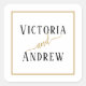 Elegant Black White Gold Script Minimal Wedding Square Sticker