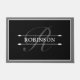 Elegant minimalist doormat printed with your initial in a pretty script with your family name written across between two dividers with arrow points.