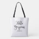 An elegant script typography tote bag with the words "Hello Gorgeous" Personalise it for yourself or as a gift. Designed for you by Blackberry Boulevard.