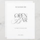 An elegant black and white open bar sign designed with refined serif typography and delicate calligraphy for a look that feels both timeless and fresh.