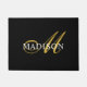 An elegant gold and white monogram on a rich black doormat to greet your friends and family. Make it uniquely yours with your first name and initial.