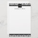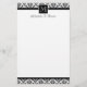 Floral flourish damask pattern border stationery in black and white with monogrammed initial letter for your last name and space for your personalised first, middle and last name. Trendy chic elegant monogram stationery that would make a thoughtful classy gift for girls and women who enjoy personalised gifts and monogram graphics for their birthday, bridal shower, school graduation, wedding or retirement presents. A must have for the desk of every lady that has a passion for hand written notes and handwriting thank you letters.