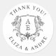 Elegant Black & White Monogram Leaf Crest Wedding Classic Round Sticker