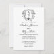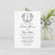 Elegant Black & White Monogram Leaf Crest Wedding Invitation