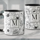Celebrate the special woman in your life with this stylish and sophisticated monogram mug, designed to bring a touch of elegance to her daily routine. Featuring a chic black-and-white floral pattern reminiscent of high-fashion and luxury perfume brands, this mug combines fashionable design with timeless style. The girly design includes a bold serif initial that stands out, while her name is gracefully written below in delicate script typography. Whether it’s for a Mother, Grandmother, or another cherished friend or family member, this mug adds a personalised and chic flair to any occasion. The black-and-white colour scheme is both versatile and stylish, but you can customise the colours to match her taste. This makes it not just a gift, but a meaningful keepsake that she’ll treasure every day.Stylish Modern Elegant Black White Monogram Mug