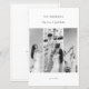 The minimalistic white background enhances the modern aesthetic, while the refined typography blends a classic serif for the date details with a delicate script font for the couple’s names.