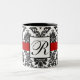 Elegant Black White Red Damask Monogram Two-Tone Coffee Mug