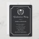The classic black background provides a sophisticated backdrop for your invitation, while the emblem adds a touch of tradition and prestige. Customise your invitation with your name, graduation year, and party details, including RSVP information for easy planning.