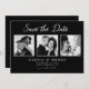 Elegant Black & White Script 3 Photo Wedding Save The Date