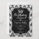 Elegant Black White Silver Photo 50th Birthday Invitation