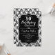 Elegant floral feminine 50th birthday invitation with your photo at the back of the card. Glam black white design with faux glitter silver. Features black and white damask pattern, script font and confetti. Perfect for a stylish adult bday celebration party. Personalise with your own details. Can be customised for any age! Printed Zazzle invitations or instant download digital printable template.