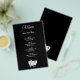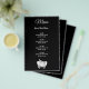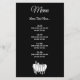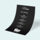 An elegant menu flyer with white script and deco letters on black for weddings, celebrations, or restaurants with a simple design featuring a set of silverware in grey on a pretty white table napkin embellished in greys and black. Customise it to change fonts, background colours, even save your design for later.