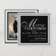 Elegant styling wishes family and friends a Merry Christmas and a Happy New Year on the front, with a full size family portrait framed on the back.