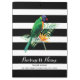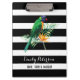 Elegant black and white geometric stripes with colourful parrot and orange flowers. Customisable clipboard template