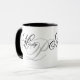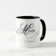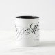 A scripted monogram of first name and the last initial in modern minimal colours of contrasting black, white and grey.