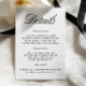 Provide guests with all the essential information in style with this elegant wedding details card. Use it to share travel directions, hotel accommodations, RSVP instructions, or your wedding website link. Fully customisable. Coordinates with the matching “Sabrina” —follow the link on this page to view matching signage, menus, invitations, and more. • Mockups for this design were created using Midjourney AI.