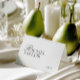 A refined black and white wedding place card featuring graceful calligraphy paired with timeless serif typography.