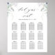 Elegant Wedding or special event seating chart with exquisite watercolor greenery and floral corner details and modern handwritten calligraphy elements. Greenery and floral in a beautiful blend of white, blue, and green hues. Many size options are available. Easy to frame or glue/staple onto inexpensive MDF. Part of our "Elegant Bliss" collection with a variety of coordinating invitations, insert cards, rsvp cards, mailing accessories, save the dates, thank you cards, and event signs and products. Visit the entire collection at: https://www.zazzle.com/collections/elegant_bliss_collection-119067295475874152 First image with the sign on a stand is showing this sign in size 32" x 40". Also great in sizes 20" x 28" or 18"24".
