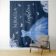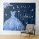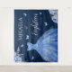 Designed as a decorative wall tapestry, this piece features a deep navy background, a shimmering blue ball gown illustration, soft floral details, and delicate butterfly accents. It’s perfect for an 18th birthday debut, formal milestone celebration, or blue-themed party held at home, a banquet hall, or a hotel venue. Used as a backdrop behind a dessert table, stage, or photo area, it helps define the space while tying the entire event together. What makes this tapestry special is its versatility—it functions as both wall décor and a backdrop, creating a polished look that feels luxurious without being overwhelming.