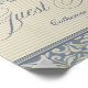 An elegant sign for your wedding guest book table that features a lovely blue and beige damask pattern with calligraphy script text and your personalised details.