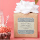 A tastefully elegant wedding favour sticker with a blue and beige baroque pattern overlaid with a coordinating inset of two-tone beige stripes. A matching blue text colour completes the design. All of the text on this sticker may be edited to your desired wording.