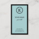 These elegant business cards feature a blue background and black border on the front, and black background on the back. The circle on the the top is for your initial/monogram. Customise to add/remove fields or adjust alignment of monogram as needed.
