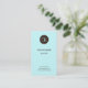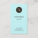This elegant design with blue background (front and back) and brown text features a brown circle at the top for your script initial/monogram. You must click on customise to add/remove fields or adjust alignment of the monogram as needed.