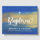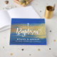 Elegant classic blue and gold boy Baptism guest book featuring abstract paint gold and blue background, ''Baptism'' calligraphy script in white and details in modern block lettering. Perfect for Baptism celebration.