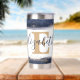 Elegant blue and gold brushstrokes personalised insulated tumbler
