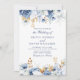 Celebrate your love in style with this elegant blue and gold floral wedding invitation. Featuring watercolor roses, golden foliage, and sophisticated typography, this design is perfect for a romantic garden wedding, classic celebration, or modern elegant affair. Customise with your names, wedding date, venue details, and more. Printed on high-quality paper with options to suit your wedding theme.