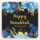 Elegant Blue and Gold Flowers Hanukkah Party Square Paper Coaster