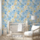 Immerse yourself in the sophisticated charm of this paisley-inspired wallpaper, featuring graceful blue and gold leaves set against a serene gradient backdrop transitioning from white to blue. The intricate leaf motifs draw inspiration from traditional paisley patterns, offering a harmonious blend of classic elegance and contemporary style. This versatile pattern brings a touch of refined artistry to any space, making it an ideal choice for those seeking a timeless yet modern aesthetic.