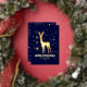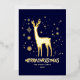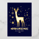 Elegant Blue and Gold Reindeer Merry Christmas Foil Holiday Card