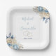 Elegant Blue and Ivory Rose Wedding Paper Plate