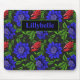 Elegant Blue And Red Flower Black Background Mouse Pad