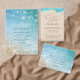 Looking for beautiful beach themed party ideas for a tropical wedding, quince, anniversary or another special occasion? Create your own custom folded escort place cards to set on your guest reception tables using a simple DIY template that is easy to personalise with a name and date. The rustic watercolor beach art by Raphaela Wilson features pretty ocean waves in shades of light teal blue, glowing string lights, and 2 white starfish atop sparkling gold sand. On the back of these personalised beach escort cards is an area to add your details to, including a thank you message if you'd like, plus some additional watercolor palm tree leaves. Should you customise the beautiful nautical design further, you can reveal tropical plumeria flowers if you would like to include a soft botanical floral touch... Feel free to also edit the modern calligraphy script to an alternate typography style if you wish. Use them for beach weddings, a tropical birthday party (ie. quinceanera / sweet 16 etc.), seaside bridal shower, nautical baby shower, or even for an elegant Luau Hawaii style. With plenty of extra space on the front, it is easy to add an entree / meal selection choice option line if needed. Enjoy! Category: elegant wedding place cards; blue watercolor wedding place cards for handwritten guest names; folded beach place cards for tables. Classic, popular nautical beach themed party colours: ocean water blue, turquoise aqua, baby blue, dark teal green, light brown, tan white, and vintage champagne gold.