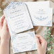 Create an invitation as timeless as your love with these elegant soft blue and white all in one wedding Invitations that exude the perfect combination of simple elegant design with a coastal chic and old money aesthetics. This versatile design is perfect for the couple that is creating a romantic theme with a classic combination of script and typography and a slightly retro vintage graphic element. Designed by Simple Desert Designs Studio. Message us for more customised colours to perfectly match your wedding theme.